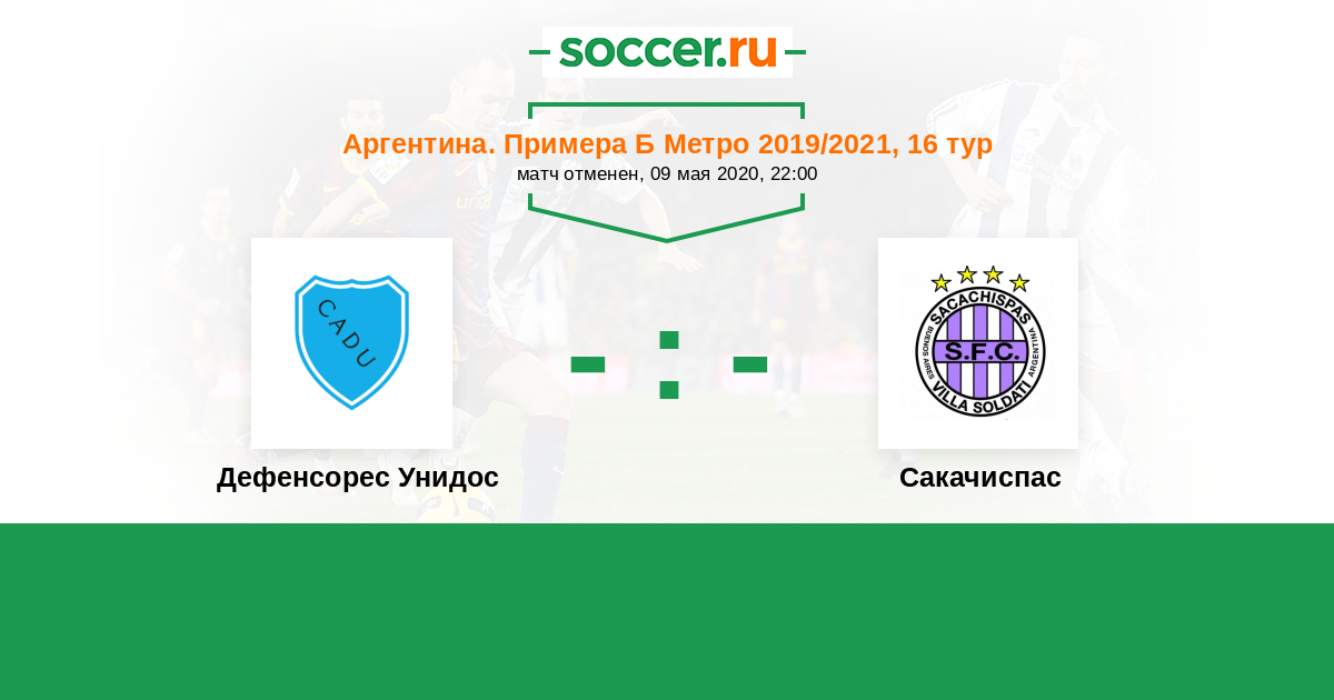 Аргентина. Примера Б Метро 24.07.2021 Дефенсорес Унидос Логотип футбольный клуб Дефенсорес Унидос (Сарате) 0:0 Логотип футбольный клуб Сакачиспас (Вилья Солдати) Сакачиспас
