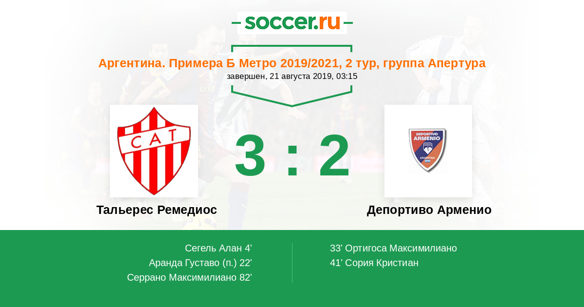 Протокол матча Тальерес Ремедиос против Депортиво Арменио