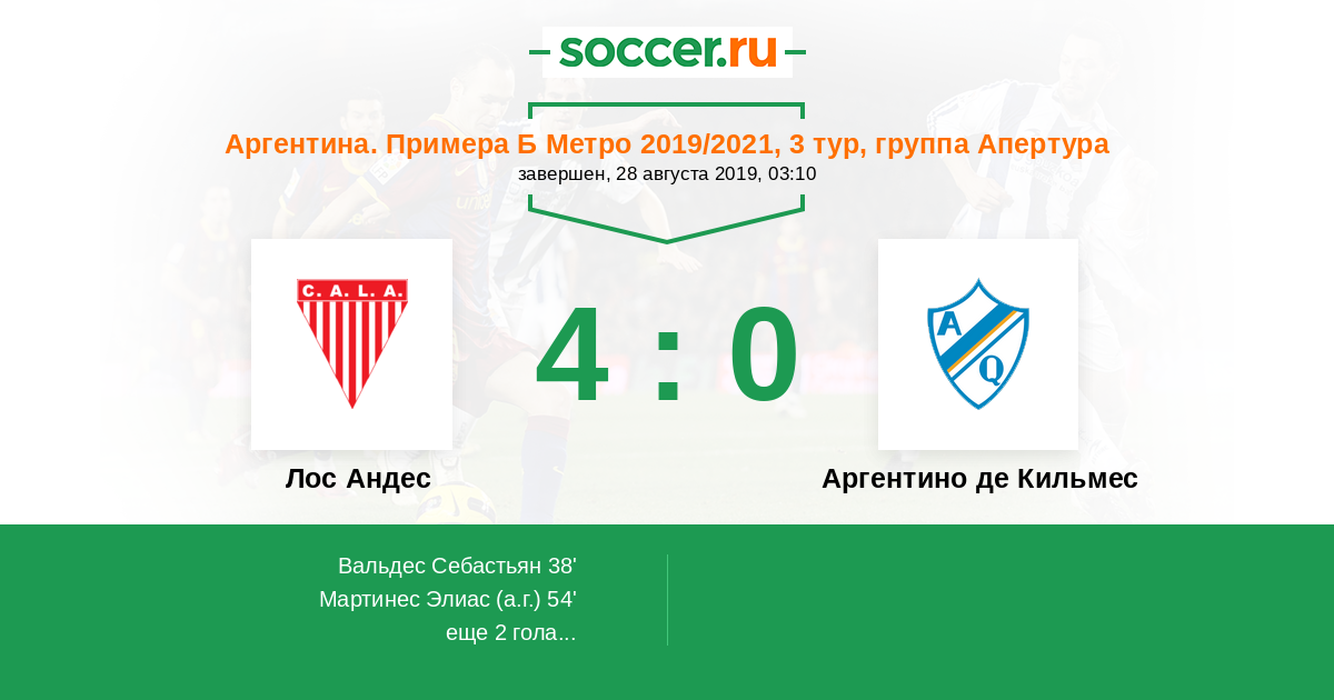 Протокол матча Лос Андес против Аргентино де Кильмес