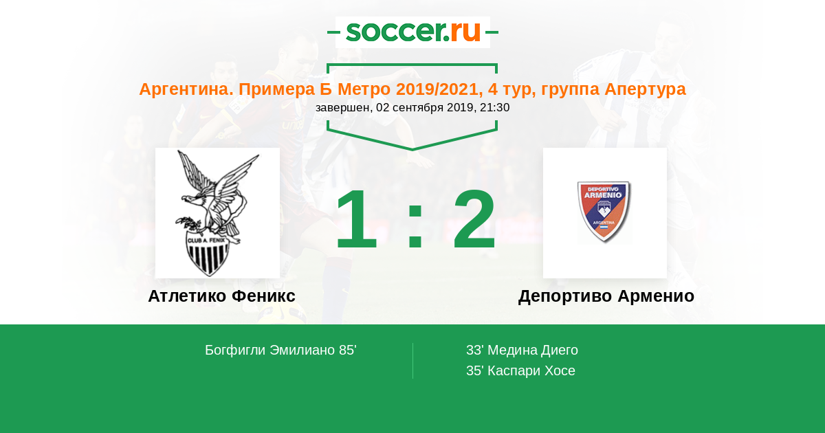 Протокол матча Атлетико Феникс против Депортиво Арменио