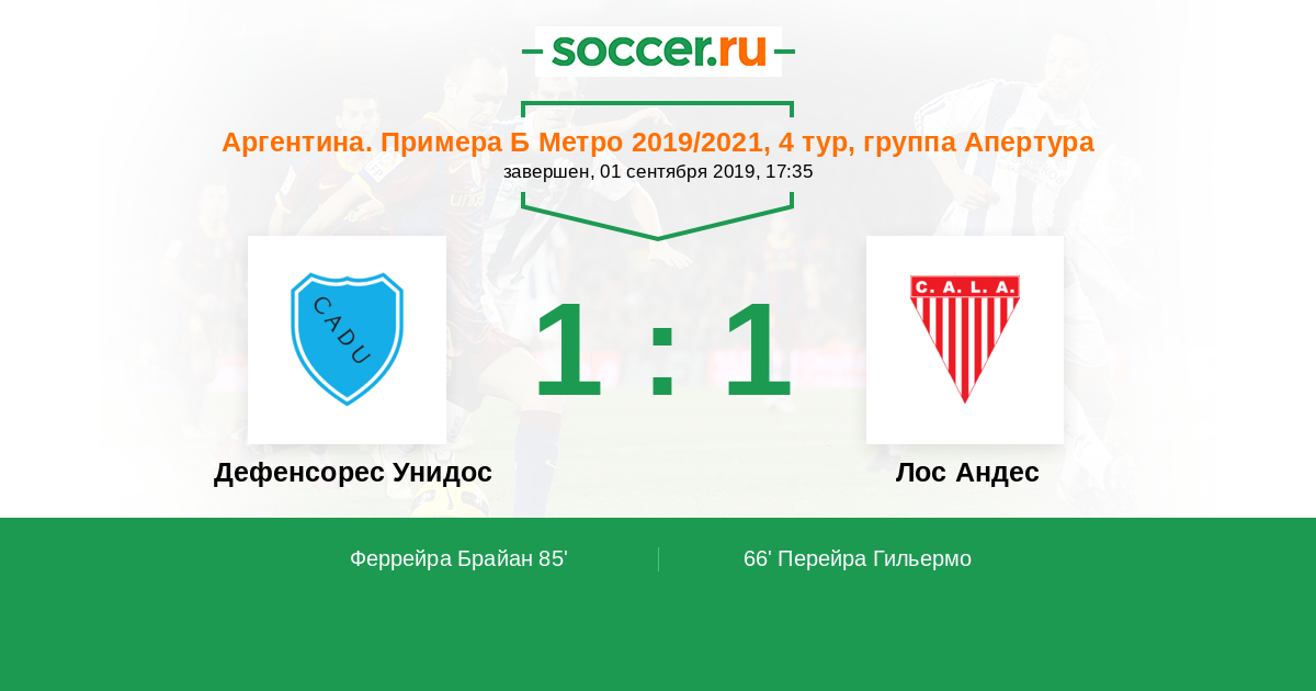 Протокол матча Дефенсорес Унидос против Лос Андес