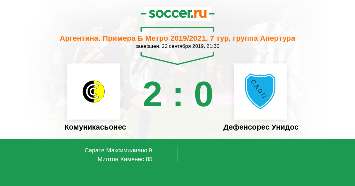 Протокол матча Комуникасьонес против Дефенсорес Унидос