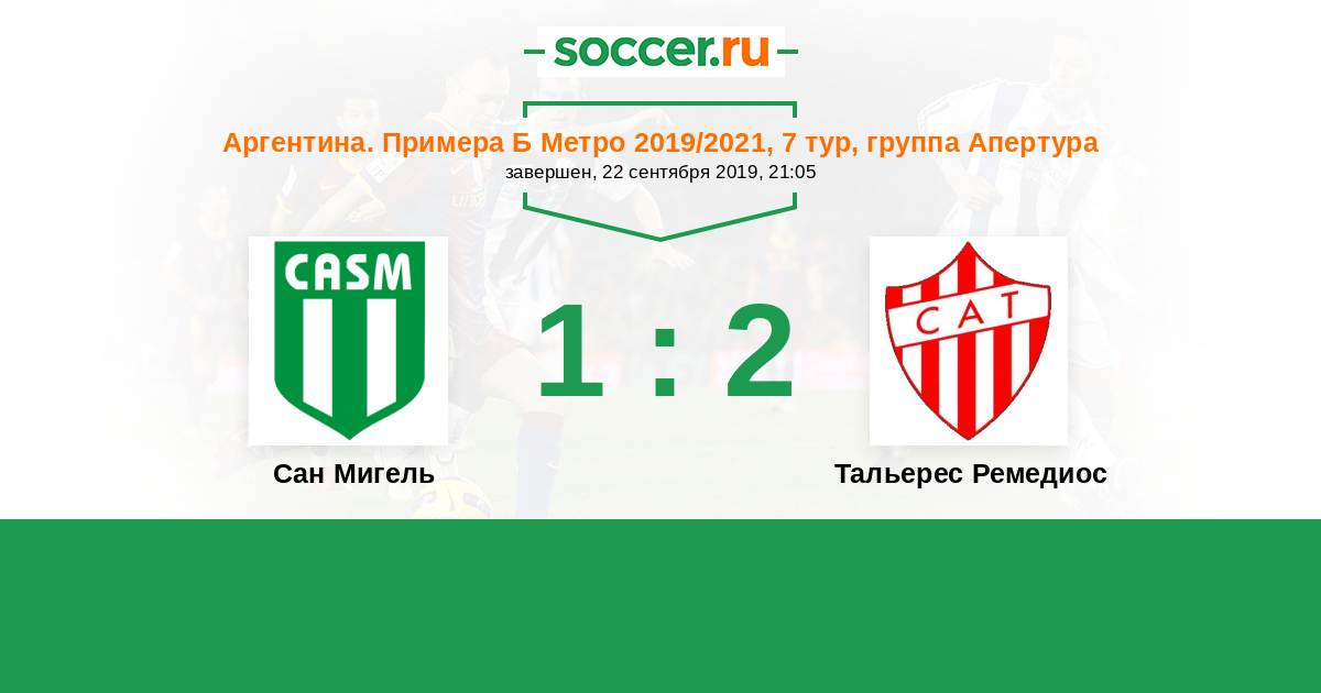 Аргентина. Примера Б Метро 02.04.2022 Сан Мигель Логотип футбольный клуб Сан Мигель 0:1 Логотип футбольный клуб Тальерес Ремедиос Тальерес Ремедиос