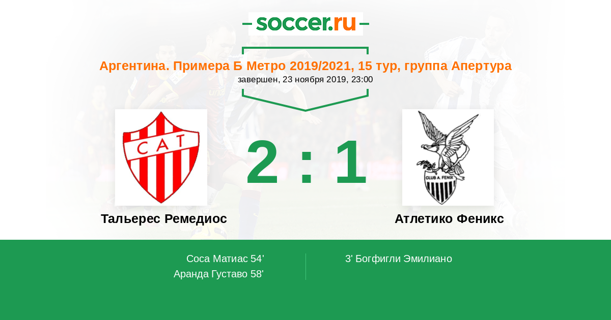 Протокол матча Тальерес Ремедиос против Атлетико Феникс