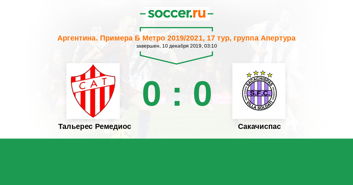 Протокол матча Тальерес Ремедиос против Сакачиспас