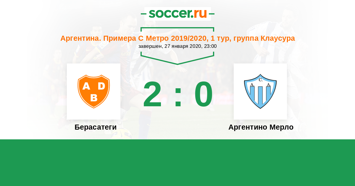 Аргентина. Примера С Метро 24.02.2012 Берасатеги Логотип футбольный клуб Берасатеги (Буэнос-Айрес) 2:0 Логотип футбольный клуб Аргентино Мерло Аргентино Мерло