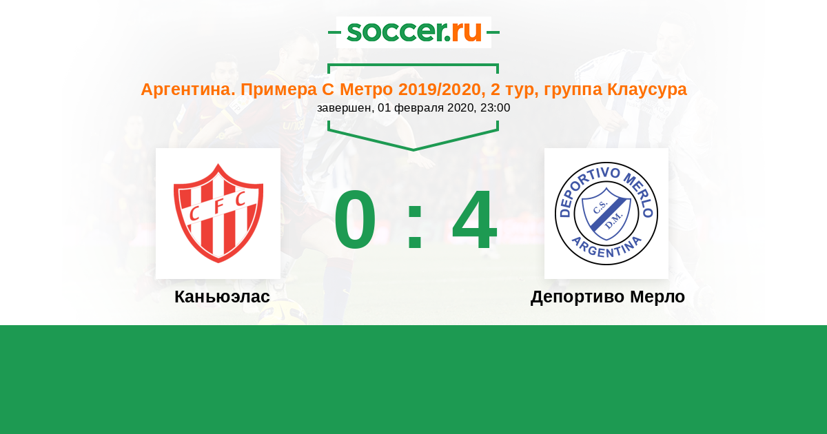 Аргентина. Примера С Метро 16.03.2019 Каньюэлас Логотип футбольный клуб Каньюэлас 1:1 Логотип футбольный клуб Депортиво Мерло Депортиво Мерло