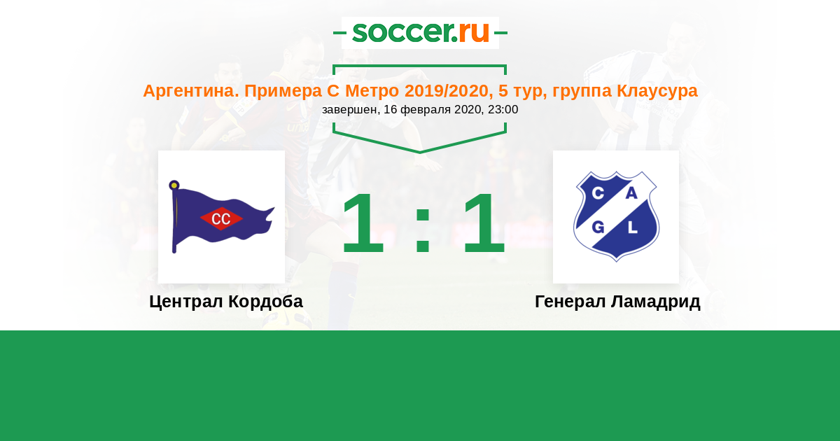 Аргентина. Примера С Метро 01.12.2018 Централ Кордоба Логотип футбольный клуб Централ Кордоба 0:0 Логотип Генерал Ламадрид (Буэнос-Айрес) Генерал Ламадрид