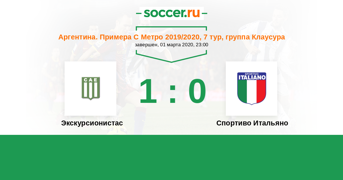 Аргентина. Примера С Метро 16.02.2019 Экскурсионистас Логотип футбольный клуб Экскурсионистас (Буэнос-Айрес) 2:1 Логотип футбольный клуб Спортиво Итальяно (Буэнос-Айрес) Спортиво Итальяно
