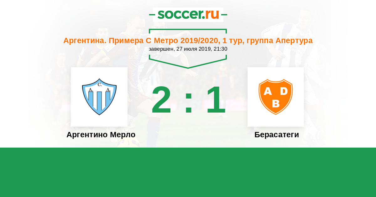 Аргентина. Примера С Метро 27.01.2020 Берасатеги Логотип футбольный клуб Берасатеги (Буэнос-Айрес) 2:0 Логотип футбольный клуб Аргентино Мерло Аргентино Мерло