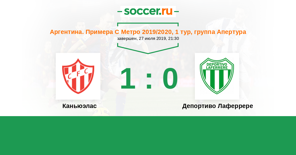 Аргентина. Примера С Метро 25.01.2020 Депортиво Лаферрере Логотип футбольный клуб Депортиво Лаферрере 1:0 Логотип футбольный клуб Каньюэлас Каньюэлас