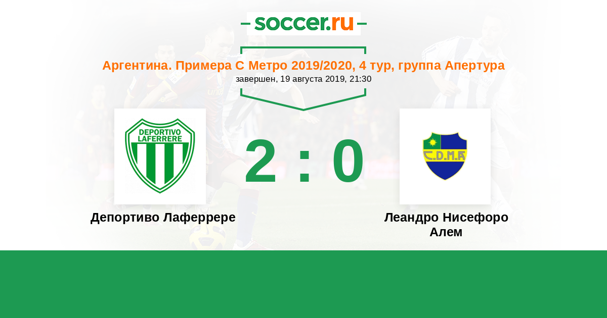 История матча Депортиво Лаферрере против Леандро Нисефоро Алем