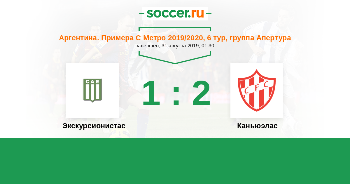 Аргентина. Примера С Метро 24.02.2020 Каньюэлас Логотип футбольный клуб Каньюэлас 1:2 Логотип футбольный клуб Экскурсионистас (Буэнос-Айрес) Экскурсионистас
