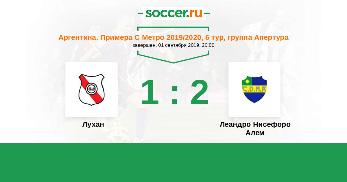 Аргентина. Примера С Метро 09.09.2017 Лухан Логотип футбольный клуб Лухан 1:0 Логотип футбольный клуб Леандро Нисефоро Алем (Буэнос-Айрес) Леандро Нисефоро Алем