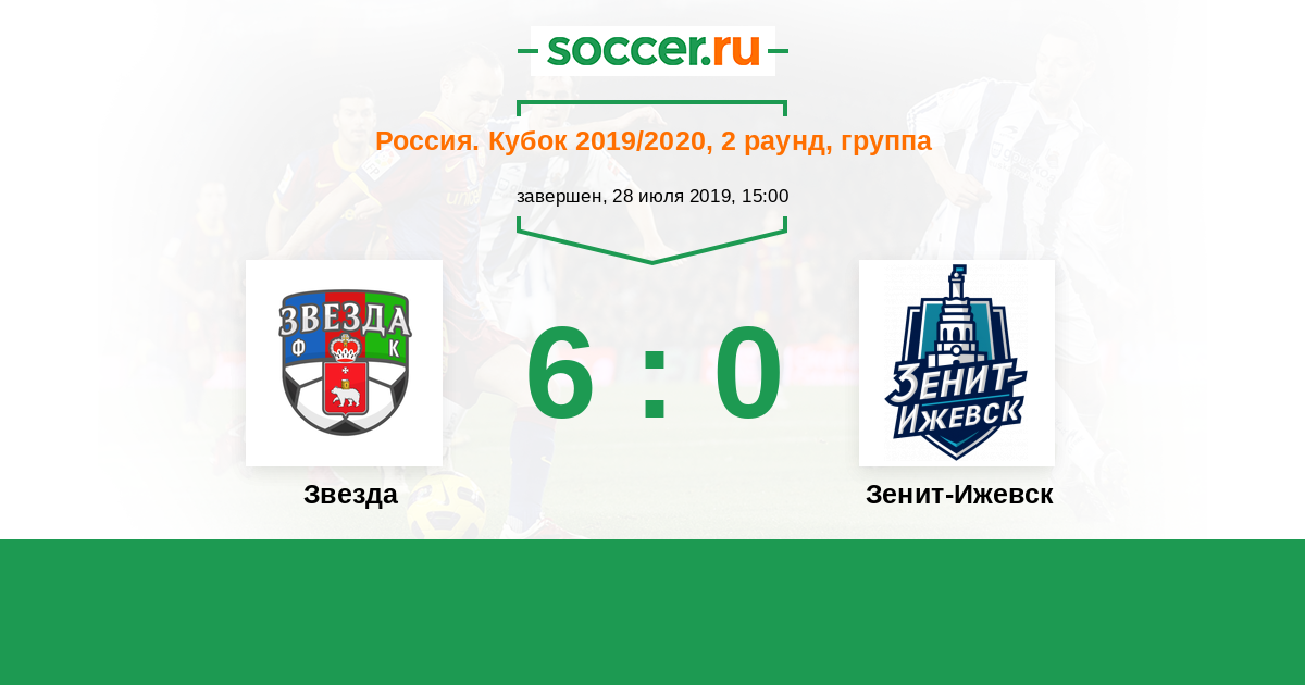 Россия. Кубок 30.07.2018 Звезда Логотип футбольный клуб Звезда (Пермь) 2:3 Логотип футбольный клуб Зенит-Ижевск Зенит-Ижевск