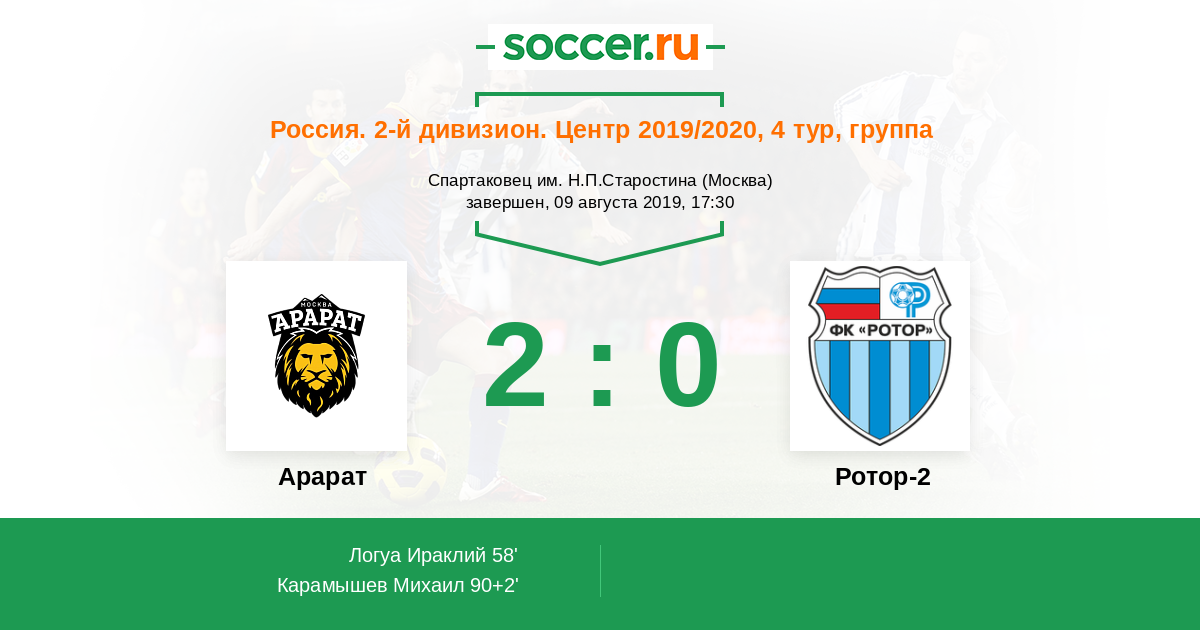 Протокол матча Арарат против Ротор-2