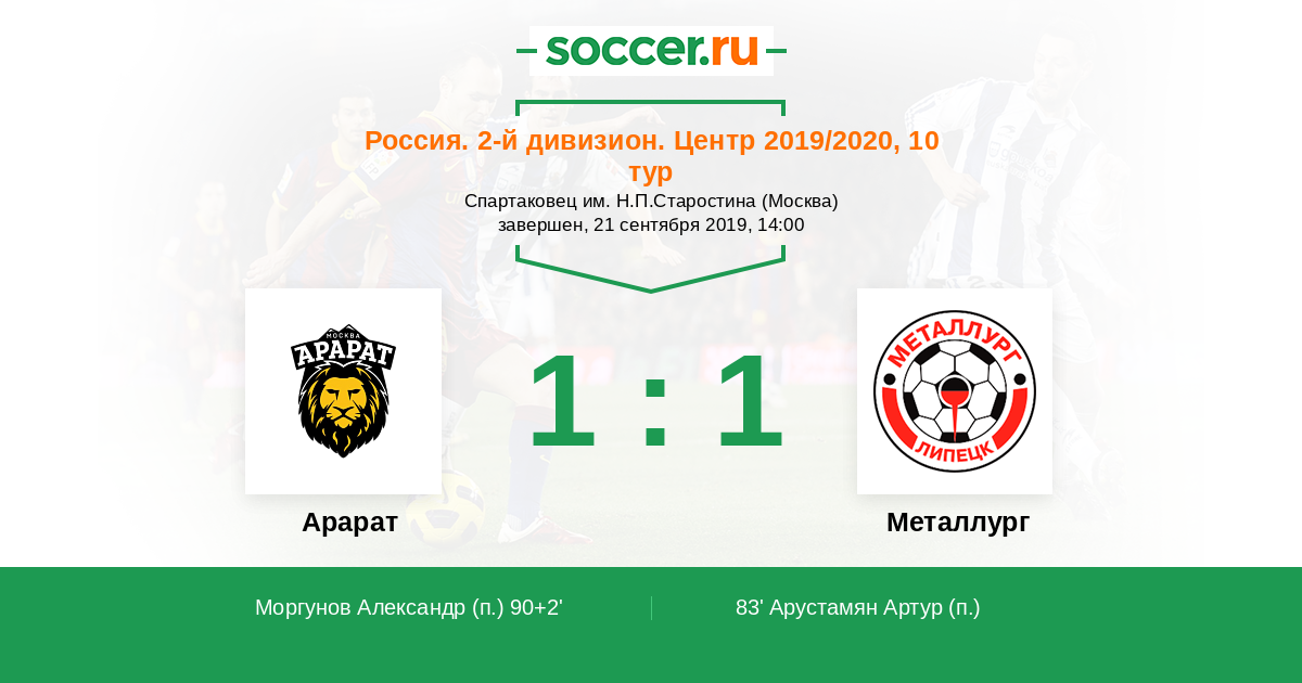 Протокол матча Арарат против Металлург