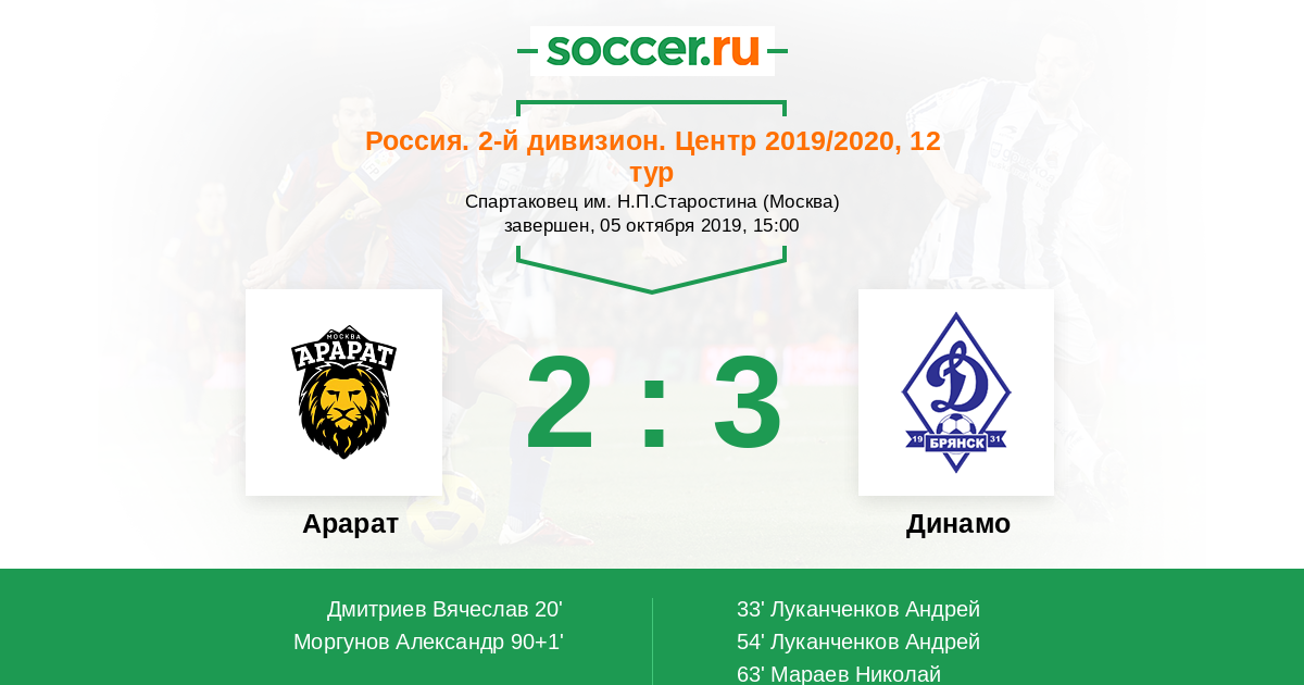 Протокол матча Арарат против Динамо Брянск