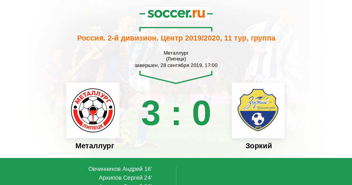 Протокол матча Металлург против Зоркий
