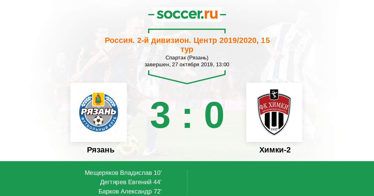 Протокол матча Рязань против Химки-2