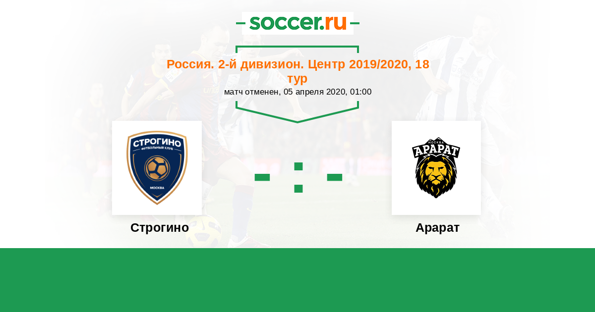 Россия. Вторая лига. Группа 3 24.08.2019 Арарат Логотип футбольный клуб Арарат (Москва) 2:1 Логотип футбольный клуб Строгино (Москва) Строгино