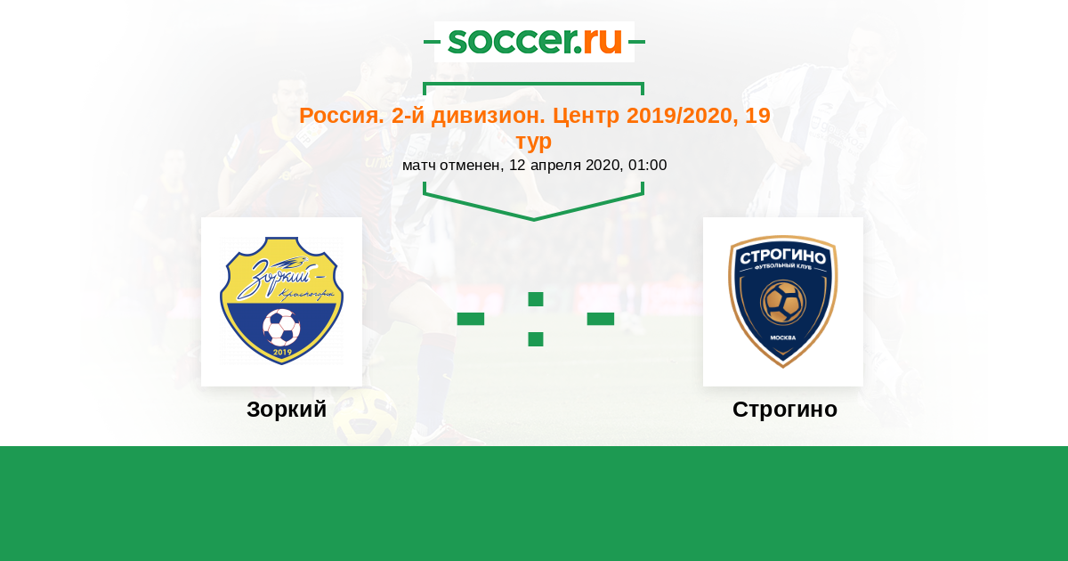 Россия. Вторая лига. Группа 3 07.04.2018 Строгино Логотип футбольный клуб Строгино (Москва) 1:0 Логотип футбольный клуб Зоркий (Красногорск) Зоркий