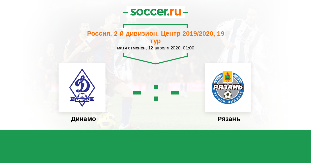 Россия. Вторая лига. Группа 3 30.08.2019 Рязань Логотип футбольный клуб Рязань 3:1 Логотип футбольный клуб Динамо Брянск Динамо Брянск