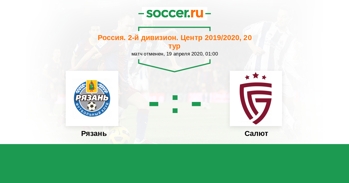 Россия. Вторая лига. Группа 3 06.04.2019 Рязань Логотип футбольный клуб Рязань 0:1 Логотип футбольный клуб Салют (Белгород) Салют