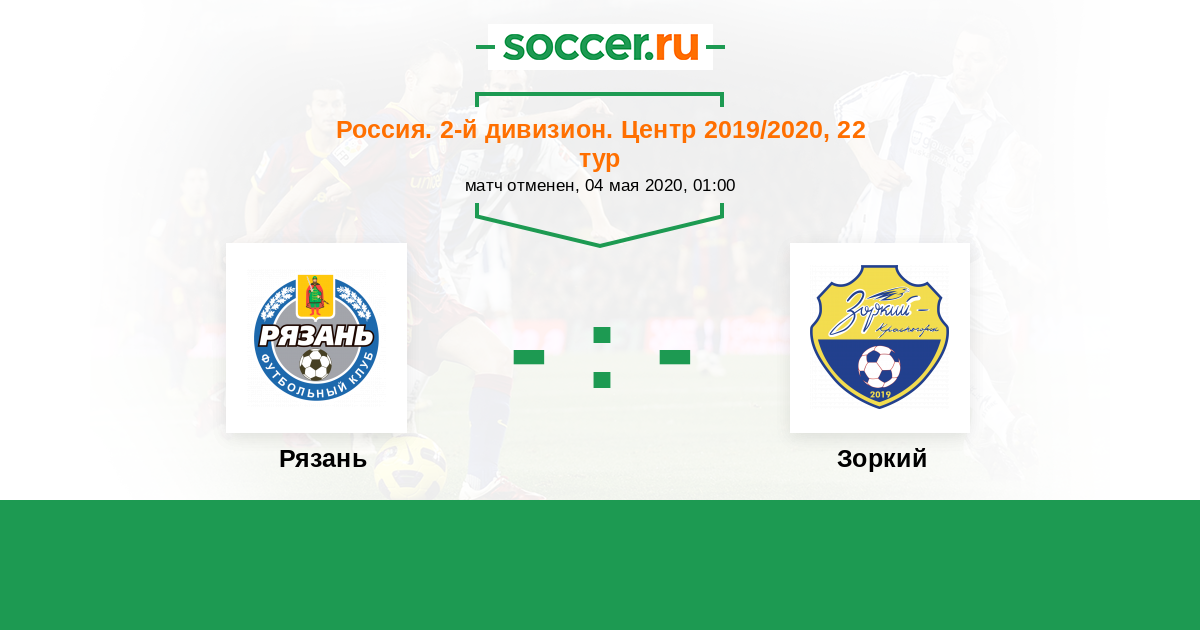 Россия. Вторая лига. Группа 3 11.05.2018 Зоркий Логотип футбольный клуб Зоркий (Красногорск) 0:1 Логотип футбольный клуб Рязань Рязань