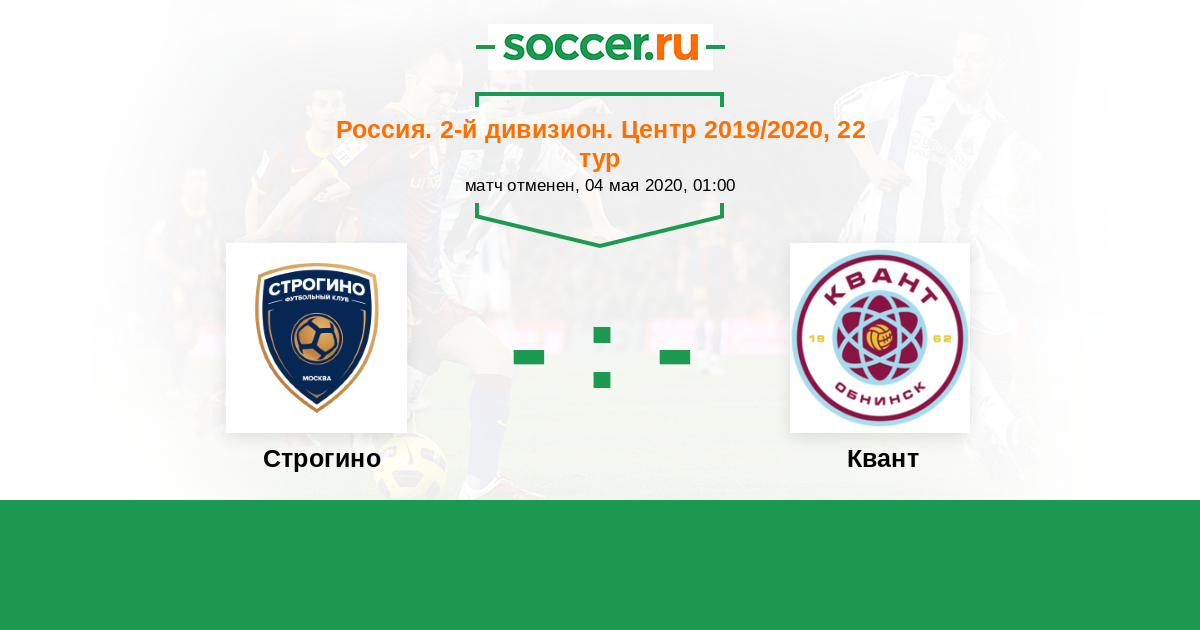 Россия. Вторая лига. Группа 3 11.04.2021 Квант Логотип футбольный клуб Квант (Обнинск) 0:1 Логотип футбольный клуб Строгино (Москва) Строгино