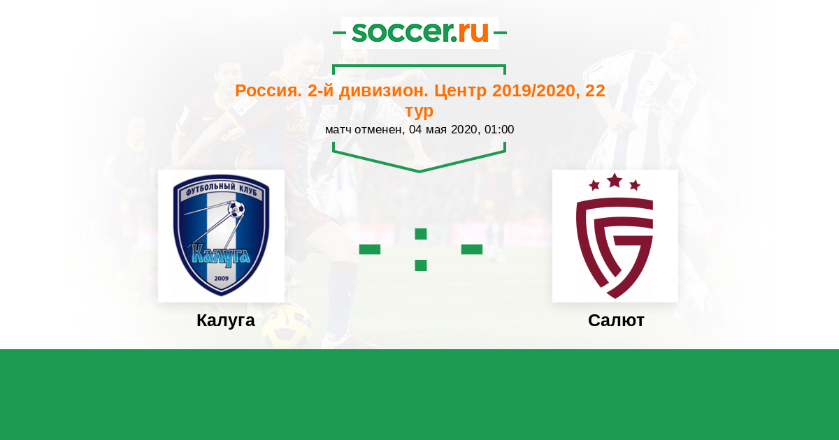 Россия. Вторая лига. Группа 3 29.10.2020 Калуга Логотип футбольный клуб Калуга 2:3 Логотип футбольный клуб Салют (Белгород) Салют