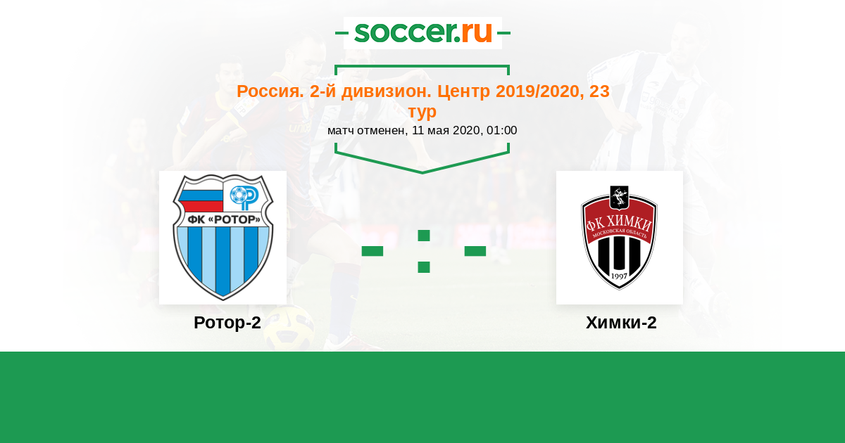 Россия. Вторая лига. Группа 3 21.04.2019 Ротор-2 Логотип футбольный клуб Ротор-2 (Волгоград) 2:0 Логотип футбольный клуб Химки-2 Химки-2