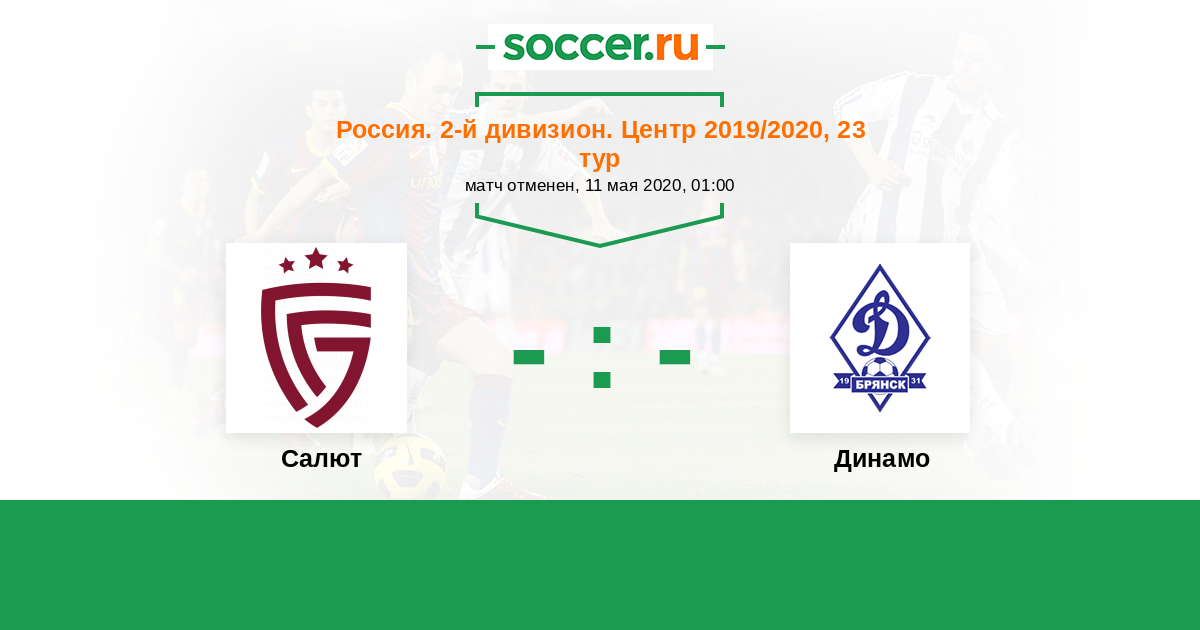 Россия. Вторая лига. Группа 3 28.09.2019 Динамо Брянск Логотип футбольный клуб Динамо Брянск 1:1 Логотип футбольный клуб Салют (Белгород) Салют