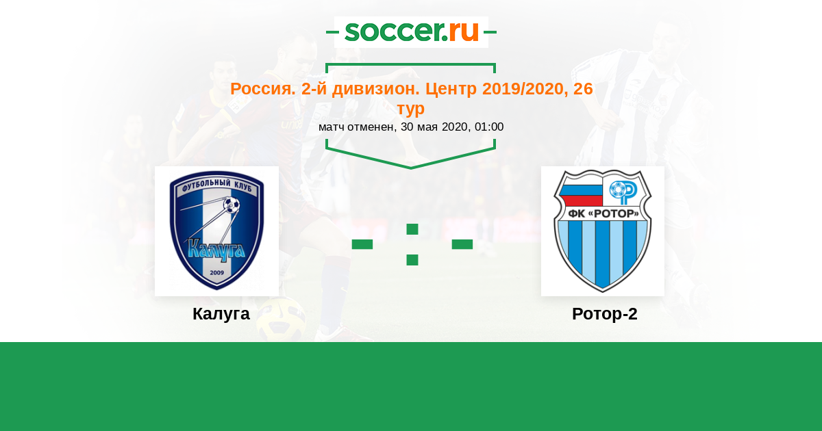 Россия. Вторая лига. Группа 3 16.07.2019 Ротор-2 Логотип футбольный клуб Ротор-2 (Волгоград) 0:1 Логотип футбольный клуб Калуга Калуга