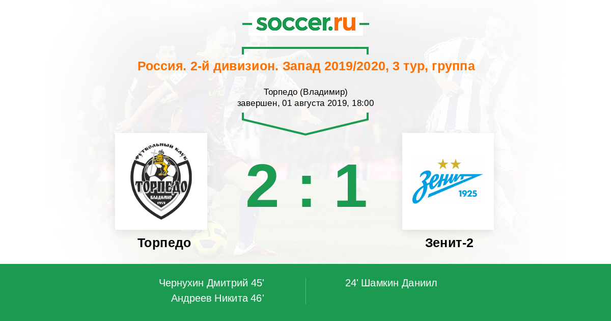 Протокол матча Торпедо против Зенит-2