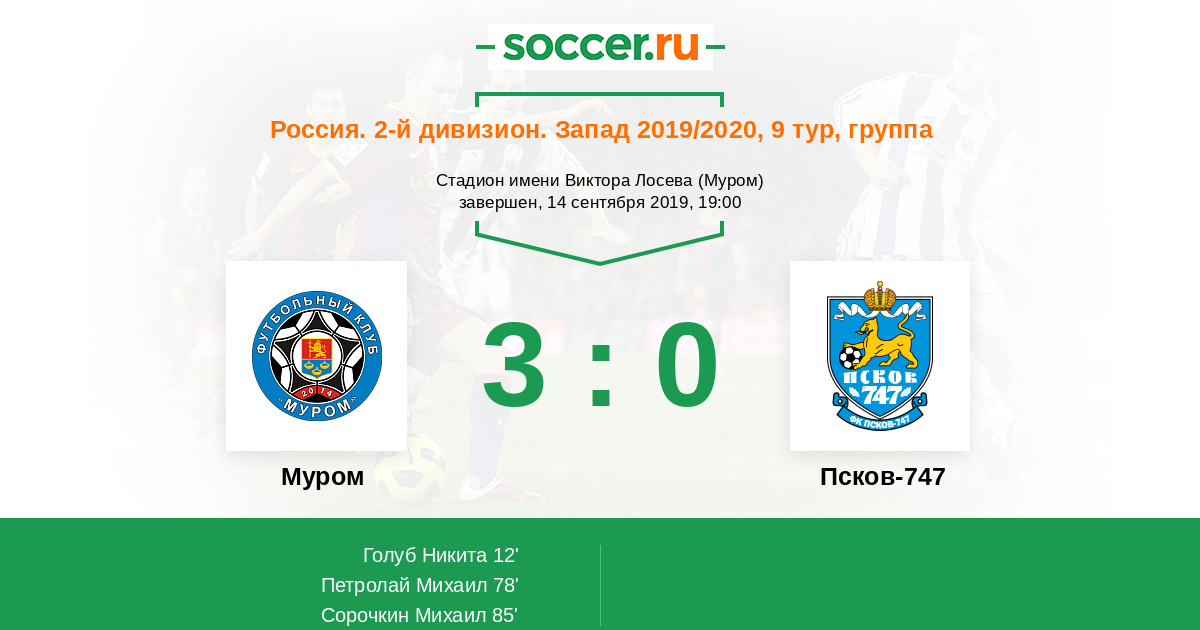 Протокол матча Муром против Псков-747