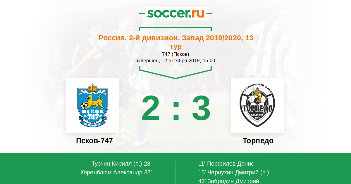 Протокол матча Псков-747 против Торпедо