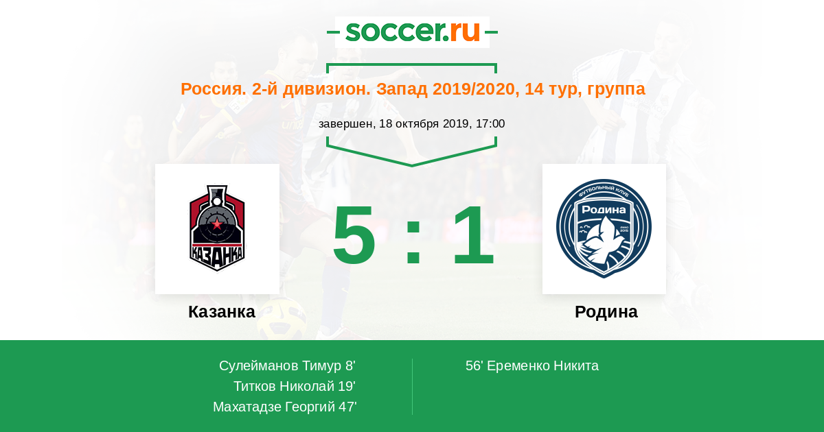 Протокол матча Казанка против Родина