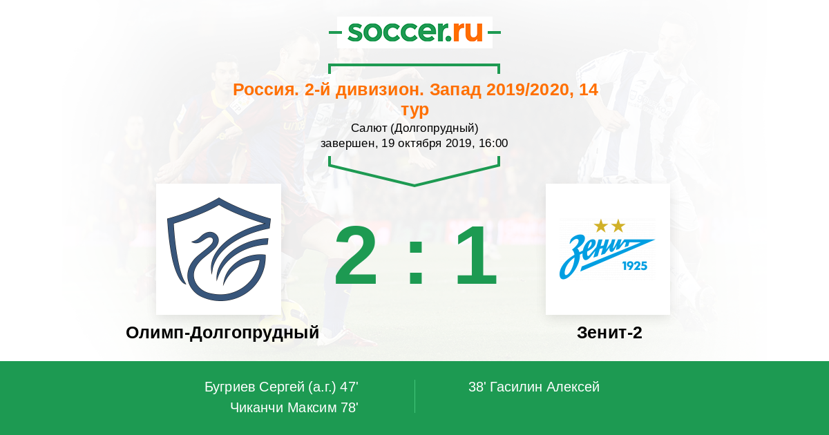 Протокол матча Долгопрудный против Зенит-2