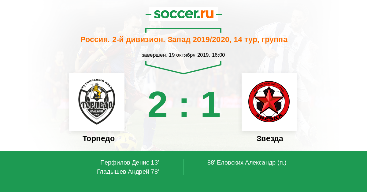 Протокол матча Торпедо против Звезда
