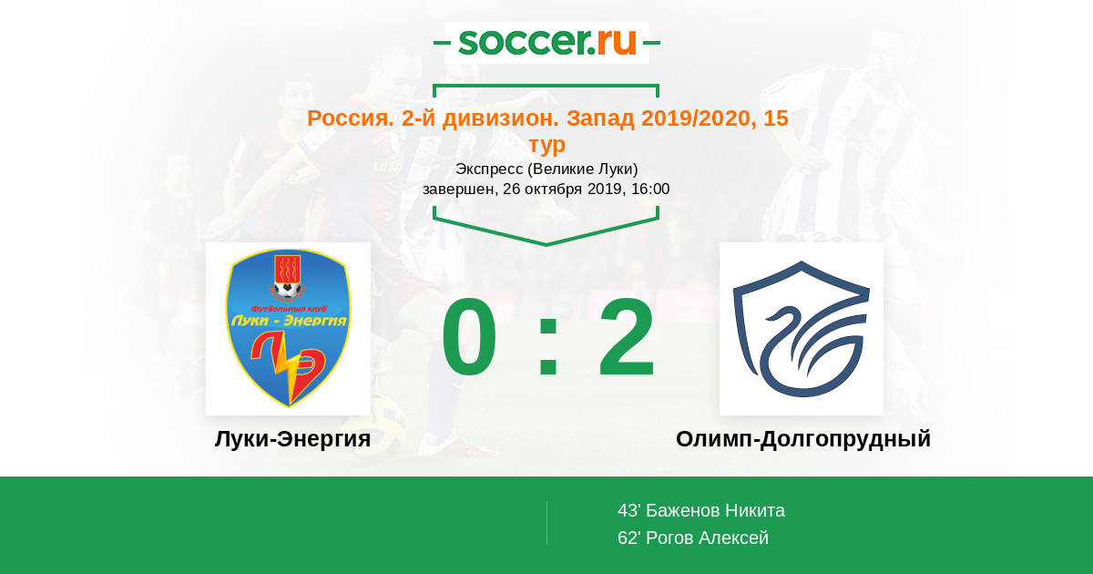 Протокол матча Луки-Энергия против Долгопрудный