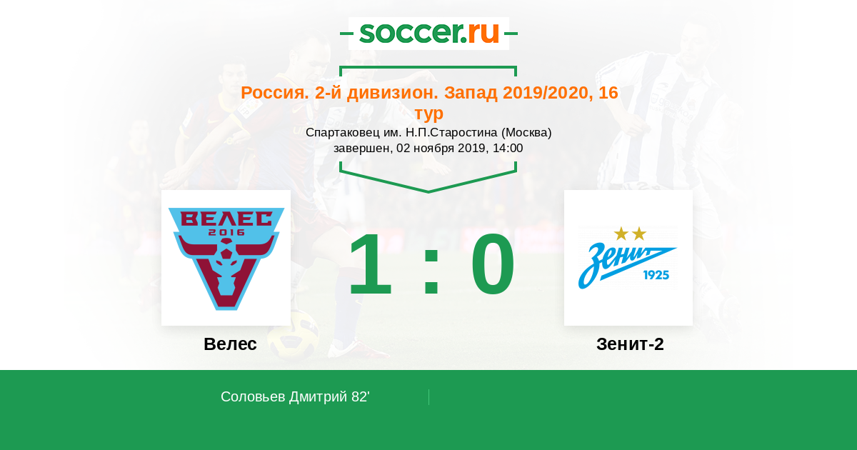 Протокол матча Велес против Зенит-2