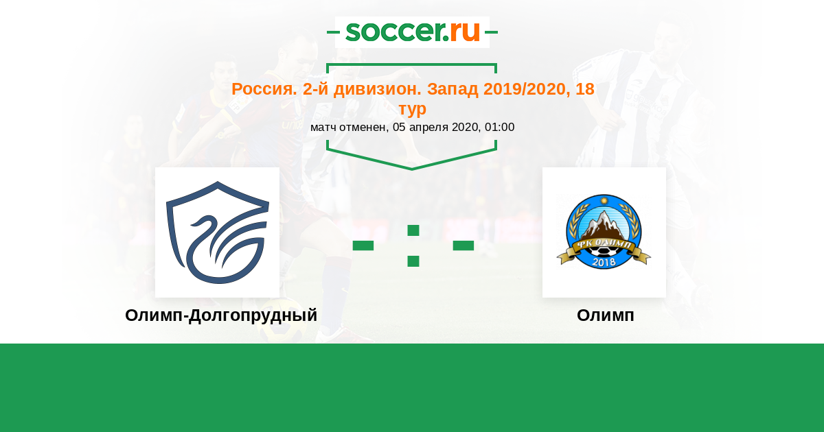 Россия. Вторая лига. Группа 2 26.10.2019 Олимп Логотип футбольный клуб Олимп (Химки) 1:1 Логотип футбольный клуб Казанка (Москва) Казанка