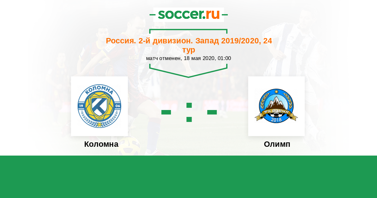 Россия. Вторая лига. Группа 2 05.10.2019 Олимп Логотип футбольный клуб Олимп (Химки) 2:0 Логотип футбольный клуб Коломна Коломна