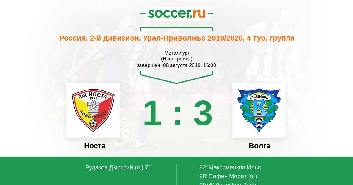 Протокол матча Носта против Волга