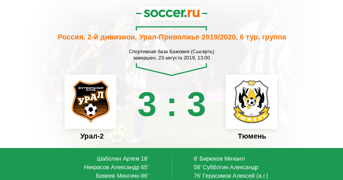Протокол матча Урал-2 против Тюмень