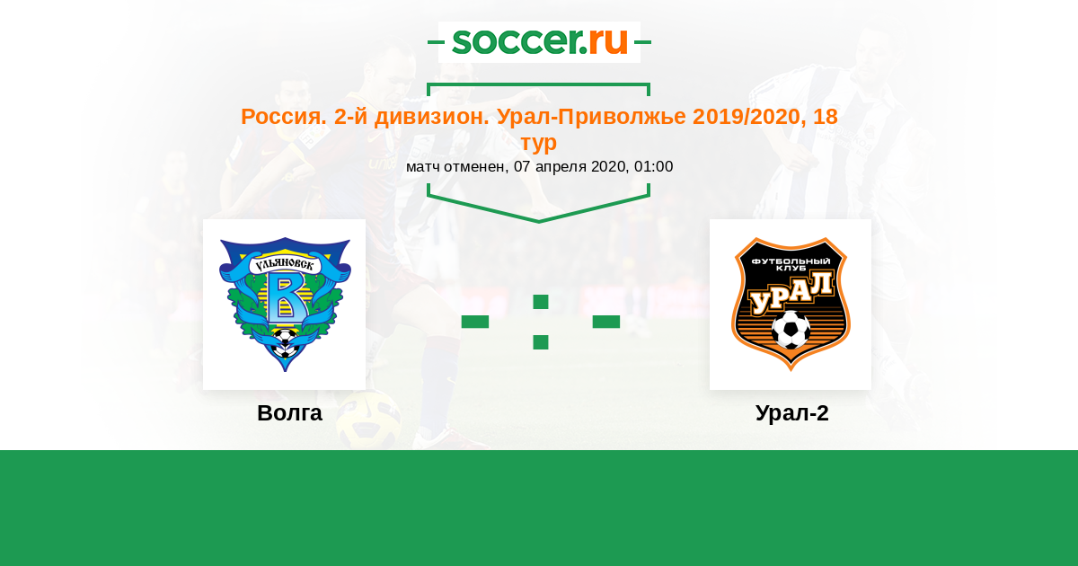 Россия. Вторая лига. Группа 4 09.08.2020 Волга Логотип футбольный клуб Волга (Ульяновск) 2:0 Логотип футбольный клуб Урал-2 (Екатеринбург) Урал-2