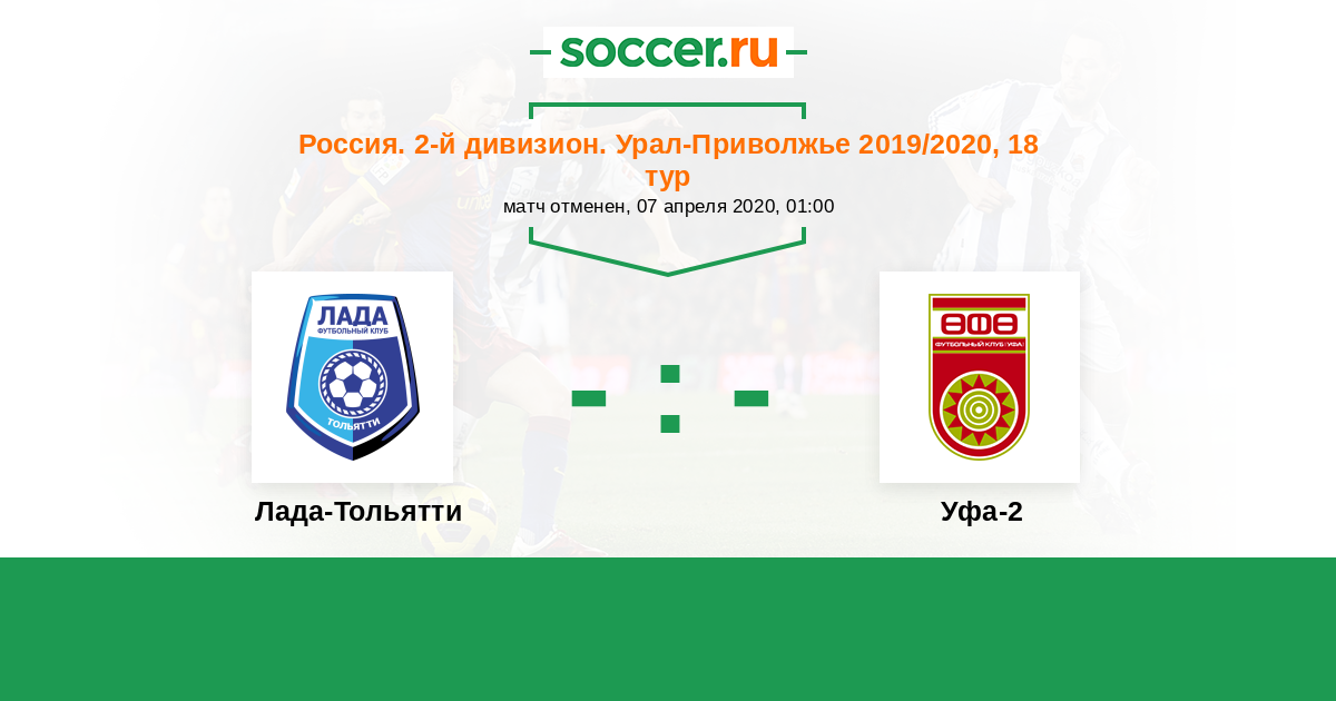 Россия. Вторая лига. Группа 4 20.10.2019 Лада СОК Логотип футбольный клуб Лада СОК (Димитровград) 2:2 Логотип футбольный клуб Уфа-2 Уфа-2