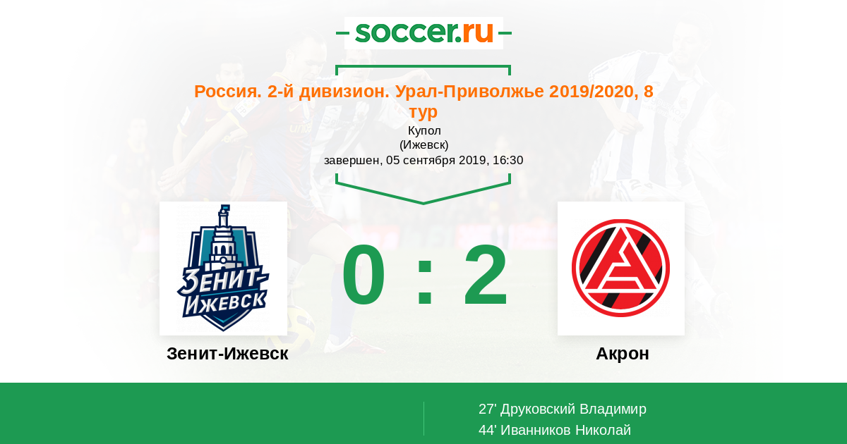 Протокол матча Зенит-Ижевск против Акрон
