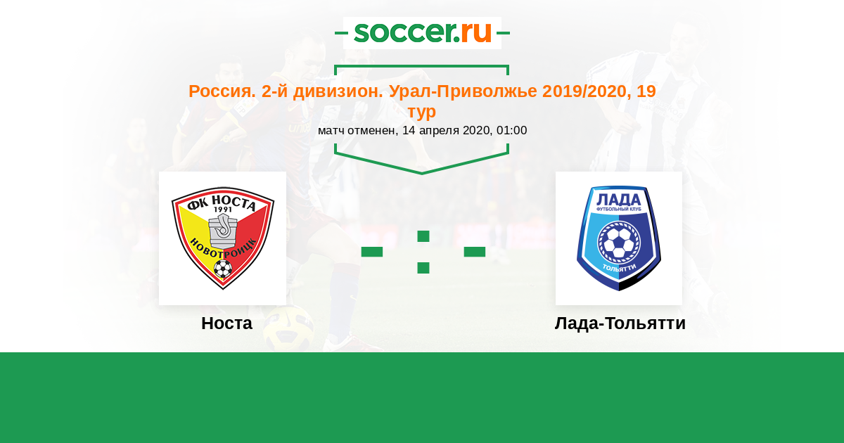 Россия. Вторая лига. Группа 4 11.09.2019 Лада-Тольятти Логотип футбольный клуб Лада-Тольятти 0:3 Логотип футбольный клуб Носта (Новотроицк) Носта